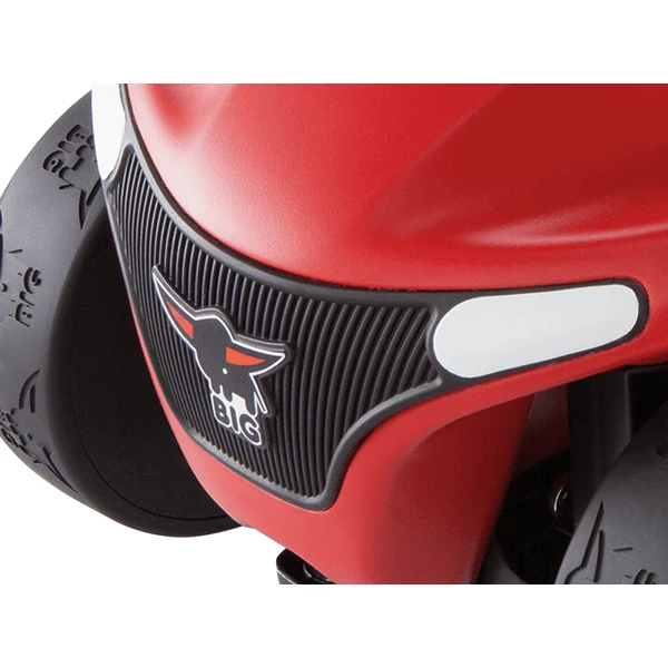 De BIG buffel valt op door zijn revolutionaire, moderne design. Zo heeft het hoogwaardige bedrukte radiatorrooster de vorm van een buffel en hebben de brede fluisterbanden een uniek buffelprofiel. Ook de iets donkerder kleurtint van de rode versie van de NEO is nieuw en symboliseert de nieuwe generatie van de BIG Bobby Car op een zeer klassieke manier.