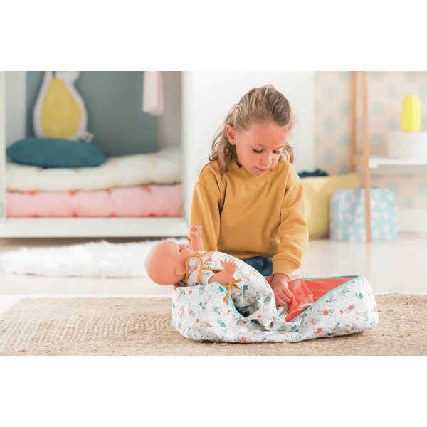 De draagtas is een gezellige en comfortabele manier voor kleine poppenmoeders en -vaders om hun favoriete babypop overal mee naartoe te nemen.