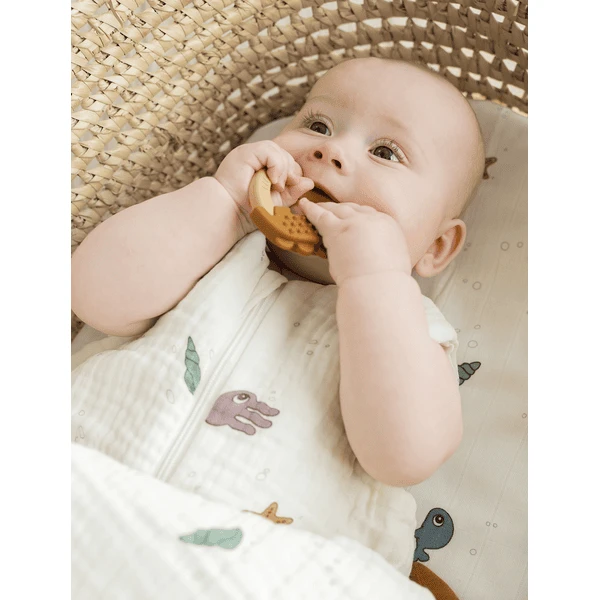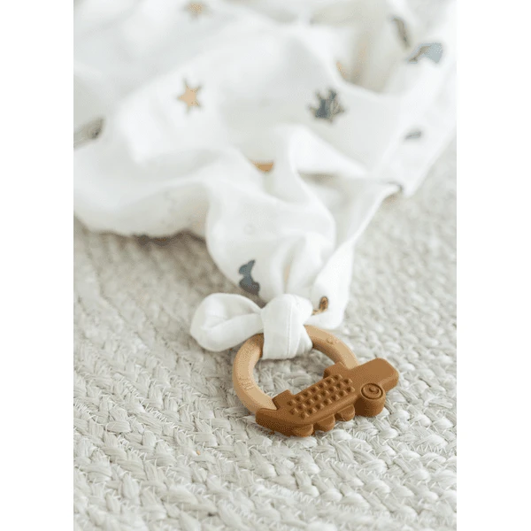 Set van twee zachte siliconen bijtringen in de vorm van Deer Friends Croco en Elphee. De bijtringen zijn gemakkelijk vast te pakken door kleine handjes en de verschillende vormen en texturen stimuleren en verzachten het doorkomen van de tandjes. Ze zijn gemaakt van zachte, voedselveilige siliconen en kunnen worden gewassen in de vaatwasser of gesteriliseerd met heet water. Leg ze even in de koelkast, want de koeling heeft een verzachtende werking op geïrriteerd tandvlees. De set is ook ontworpen voor de kleinste babyhandjes en stimuleert de visuele, orale en tactiele zintuigen.