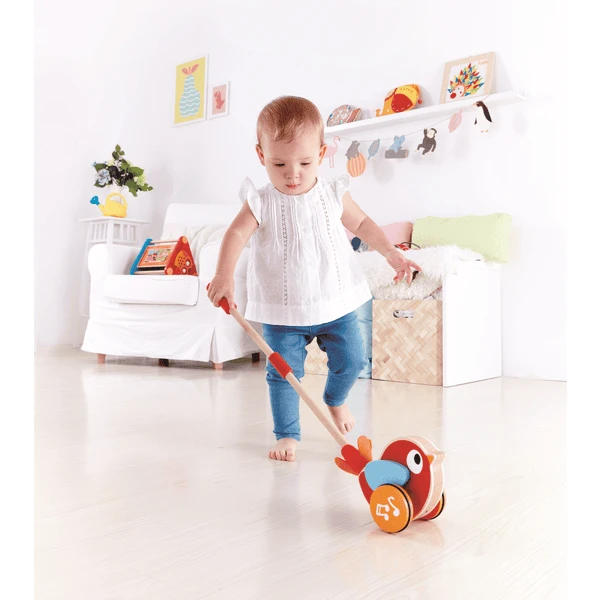Lilly is een vrolijke, fluitende vogel. Deze ondersteunt je bij het leren lopen.