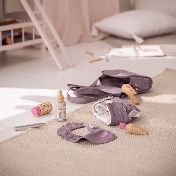 - 6 x accessoires (zuigfles, kam, 2 x crèmetubes, poederdoosje, thermometer)