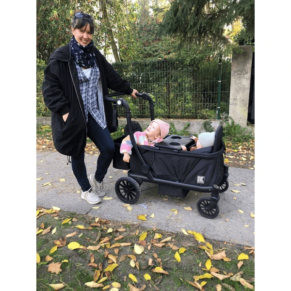 een combinatie van een handkar en een kinderwagen, combineert functionaliteit,veiligheid en comfort in één product.