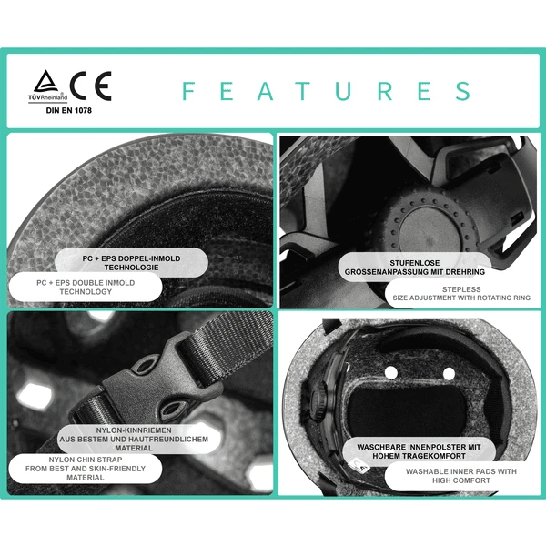 - Dankzij de voorzieningen blijft de helm stevig op het hoofd zitten en altijd in de juiste positie.