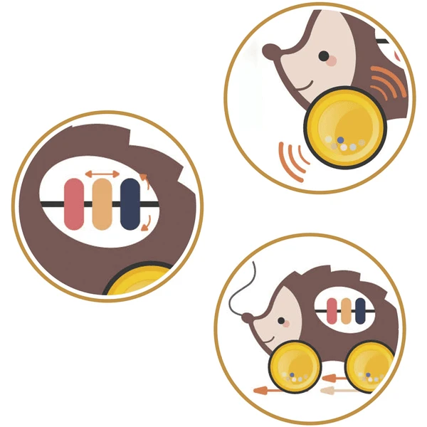 - De schattige egel heeft rammelaars in alle vier de wielen en Activity wielen in zijn buikje