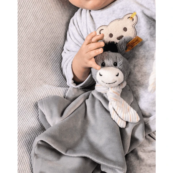 Steiff Knuffeldoekje ezel Dinkie grijs-blauw, 26 cm