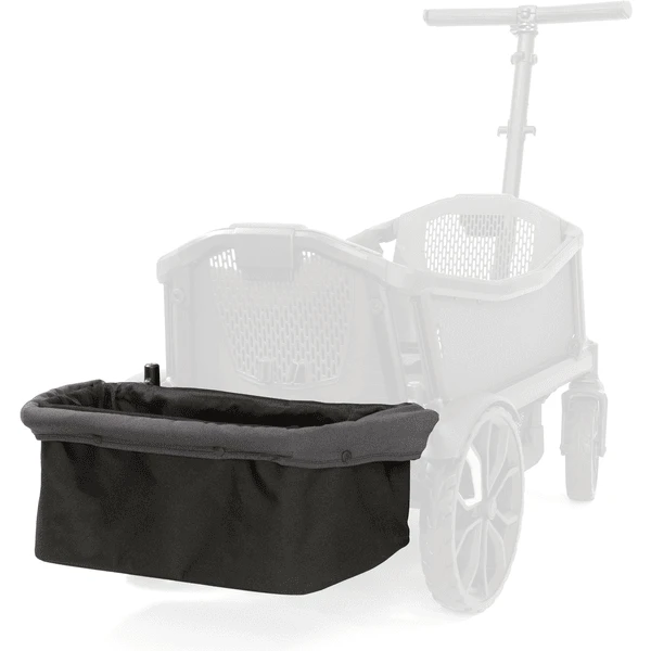 De eettafel vindt ook plaats in de transporttas. De textielzijden zijn afneembaar en machinewasbaar. De hoes met rits kan op de bodem van de tas worden opgeborgen of de inhoud van de mand beschermen.